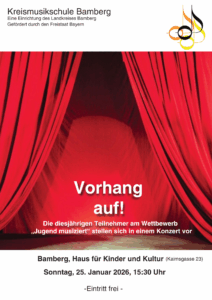 Vorbereitungskonzert für „Jugend musiziert“. Die Teilnehmer und Teilnehmerinnen am Wettbewerb „Jugend musiziert“ stellen sich in diesem Konzert vor. Eintritt frei!
